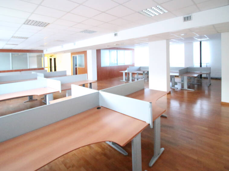 – Spazi uffici arredati con scrivanie complete di divisori;