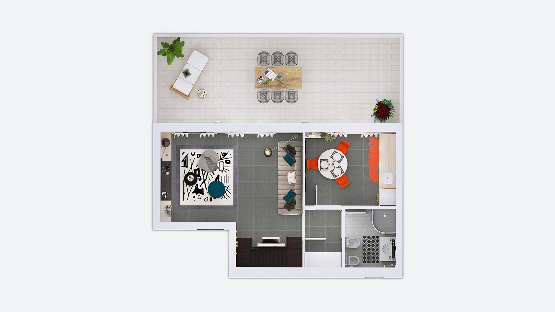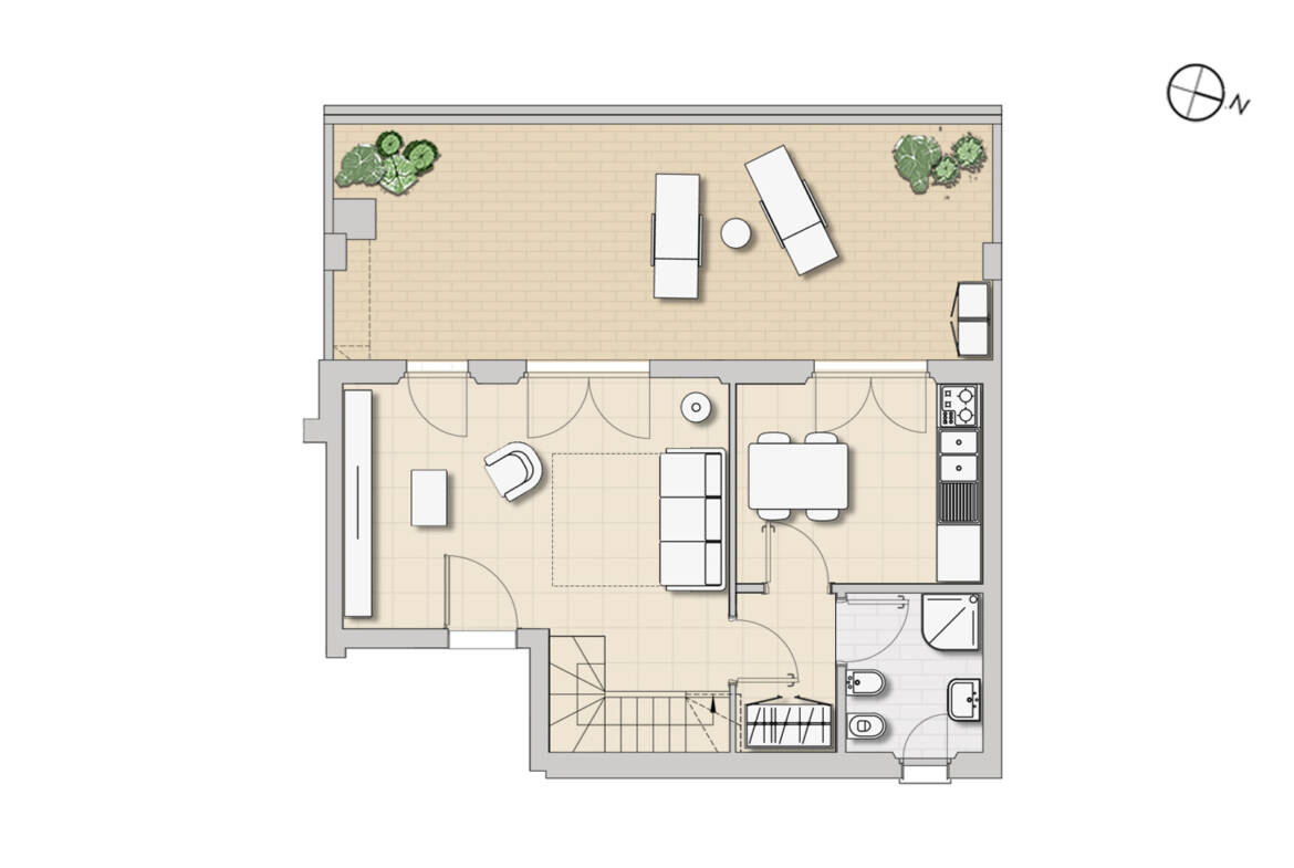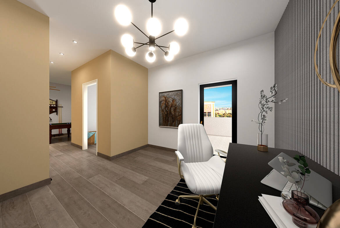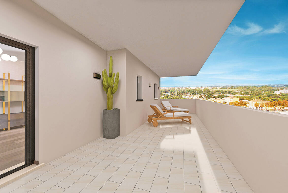 Panoramico Attico composto da ampio soggiorno, cucina abitabile, balconi e servizi. Attraverso una scala interna si accede alla mansarda di 45 mq formata da tre ambienti con terrazza.