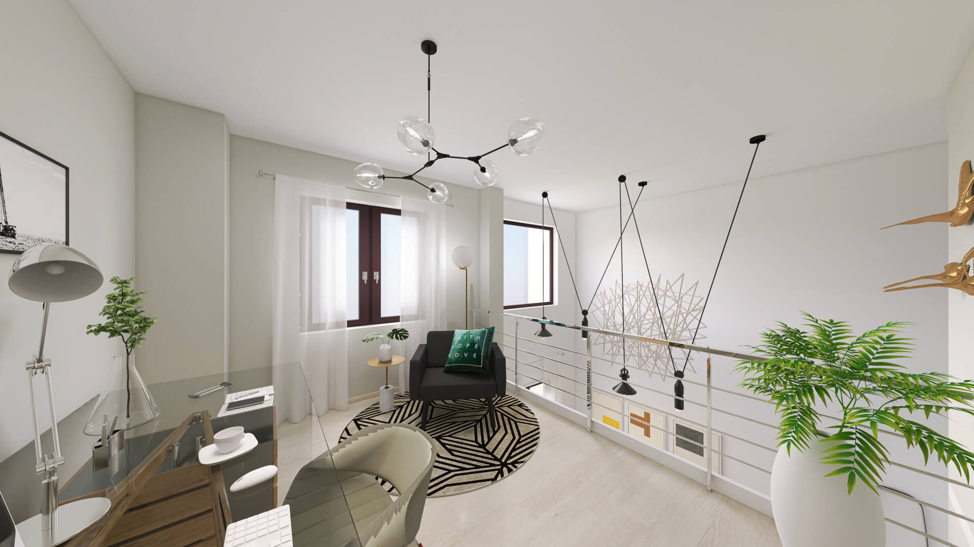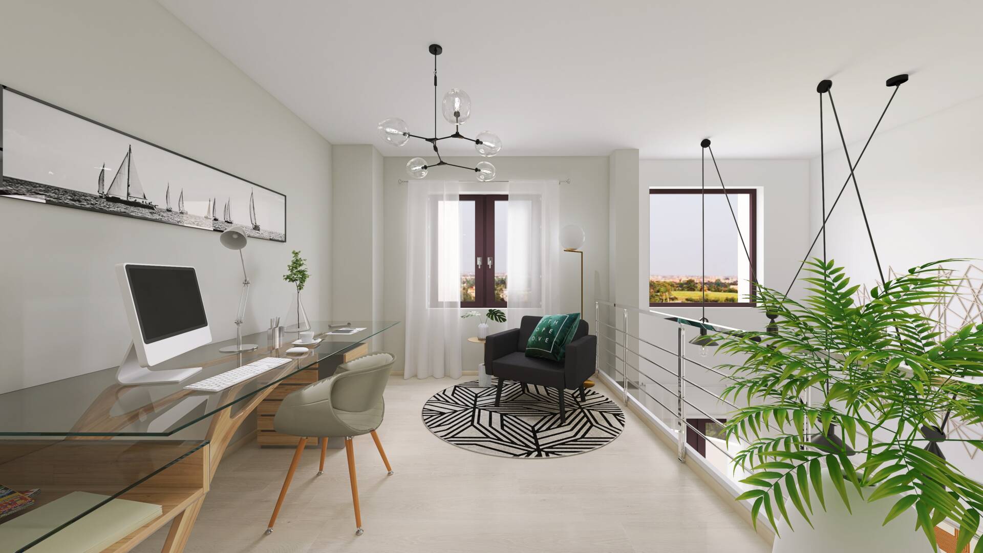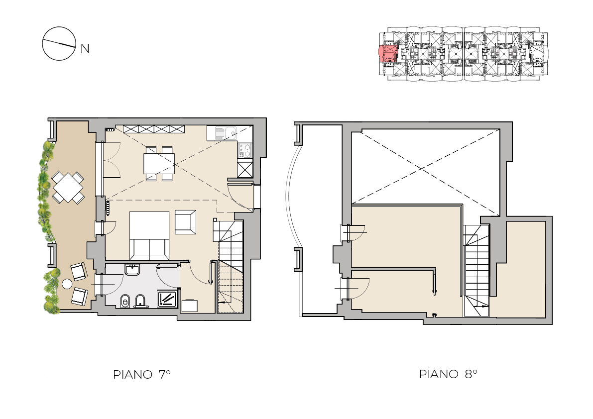 Splendido duplex Bilocale composto da ampio soggiorno con angolo cottura, zona notte, balcone di 13 mq, servizi e soppalco di 29 mq.