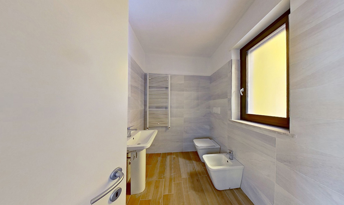L’alloggio è fornito di porta blindata, videocitofono, cronotermostato ambiente ed elettrovalvole, impianto TV centralizzato, lampade d’emergenza e predisposto sia per l’impianto d’allarme che di condizionamento. Lo stabile è provvisto di ascensori e teleriscaldamento centralizzato.