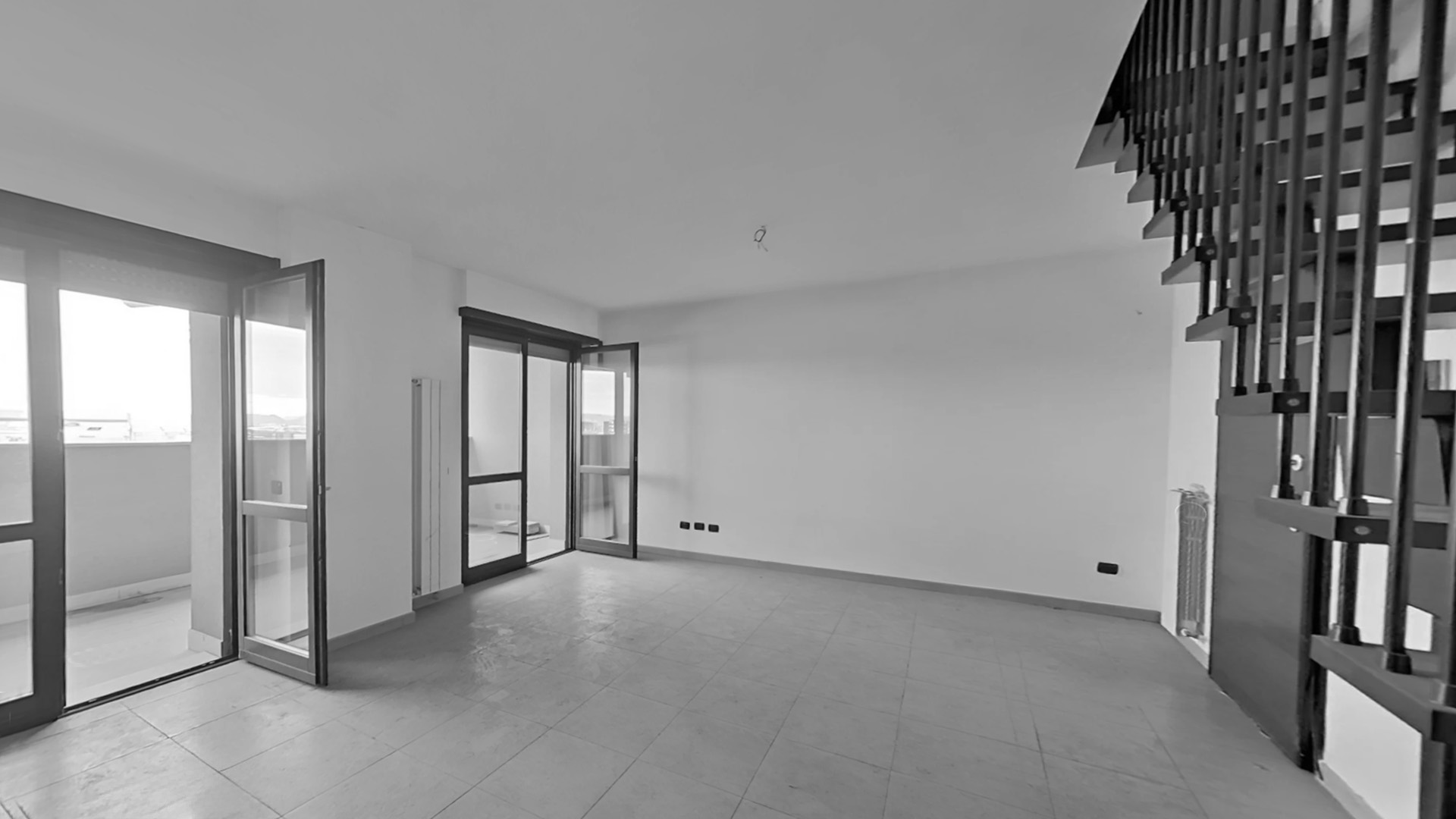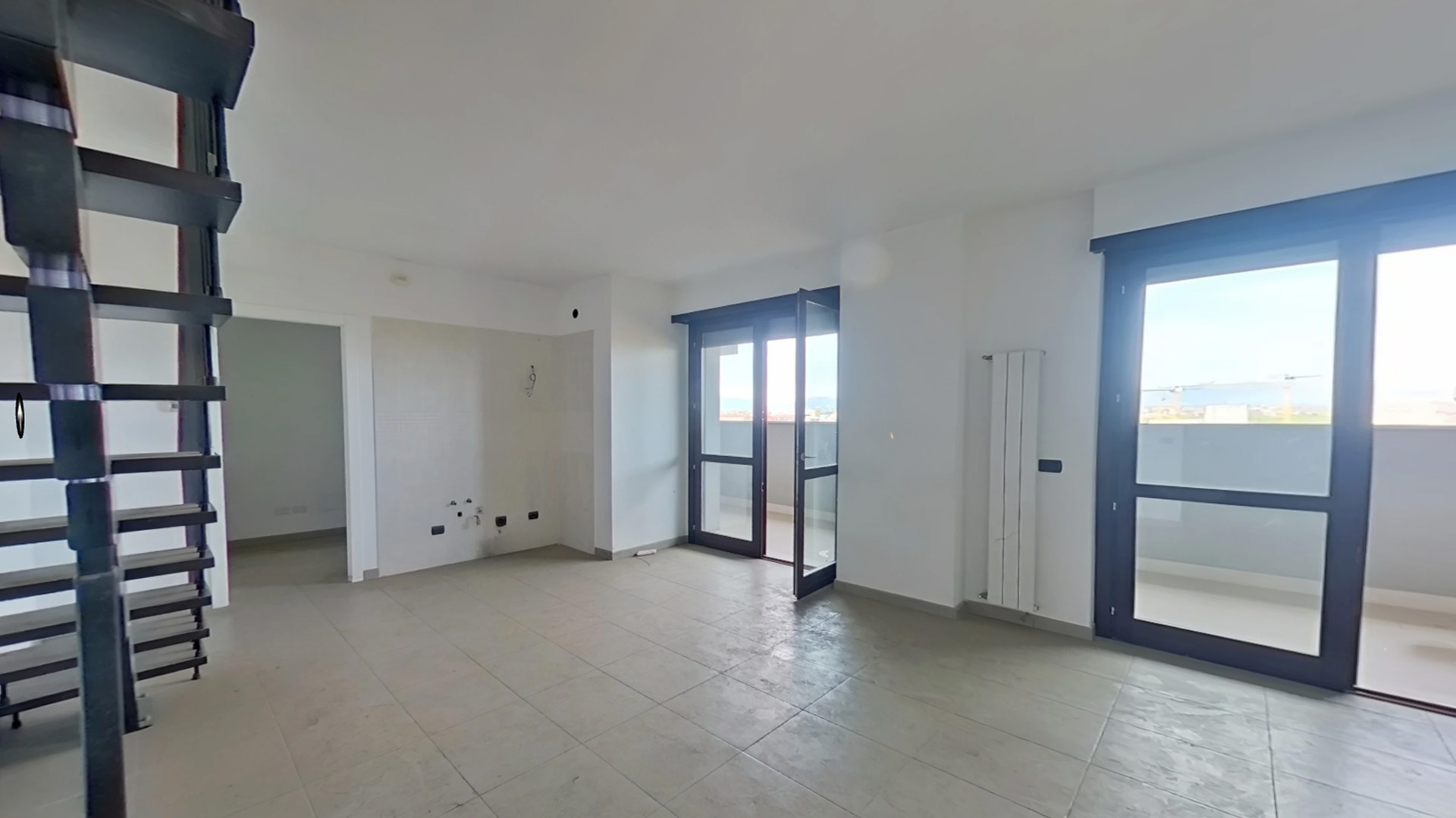 Attico panoramico su due piani, composto da zona living con angolo cottura, balcone e servizi. Al piano superiore 2 camere da letto con due bagni ed ampio ripostiglio.